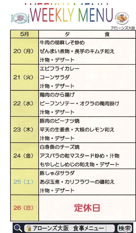 アローンズ大阪 週間メニュー【9/22~9/28☆週間メニュー】2025